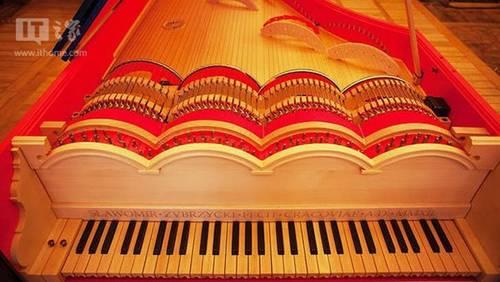 该乐器很像钢琴,其弹奏的方式也一样,但它不是敲打琴弦,其内部作用过程是通过一些可旋转的齿轮来摩擦琴弦,由此产生一种类似于大提琴的声音。