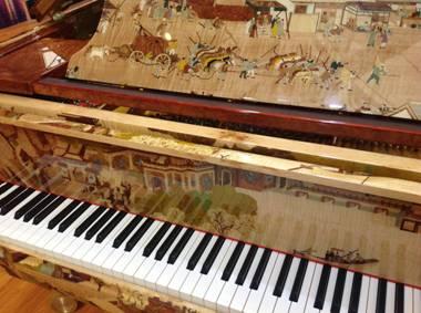 个性化钢琴是珠江钢琴集团的特色新品,继孔雀钢琴、亚运概念琴、云石纹路钢琴等个性化钢琴,今年上海国际乐器展上,珠江钢琴集团重磅推出的全球首台恺撒堡“清明上河图” 概念钢琴惊艳亮相!此款琴由珠江钢琴集团耗时3年打造而成,精心挑选了国内外数十种名贵木材加以喷绘加工,零部件全部由手工镶嵌和拼接到钢琴各个面上。通身外壳上描绘了北宋名画《清明上河图》全景,钢琴演奏时,伴随着优美的旋律,这些人物和场景仿佛“活”了起来,琴画共相辉映,演绎一幅音乐画卷!