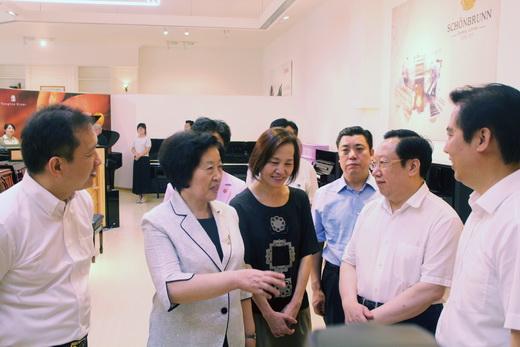 柏斯音乐集团总裁吴天延向各位领导详细介绍了集团三十年的发展历程及在乐器研发、生产、销售、教育培训、音乐文化推广等方面的规划和建设情况。随后,孙春兰一行在集团总裁吴雅玲、吴天延的陪同下,先后参观音源车间、缠弦车间及总装车间,全方位考察钢琴的制造流程及工艺。