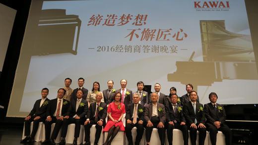 10月26日晚,“2016 KAWAI经销商答谢晚宴”上海召开。株式会社河合乐器制作所代表取缔役会长兼社长河合弘隆、中国乐器协会常务副理事长曾泽民,柏斯音乐集团总裁吴雅玲、吴天延,著名钢琴家李名强教授、谢哲邦教授、齐欢等嘉宾与300多位经销商代表共同出席了此次活动。