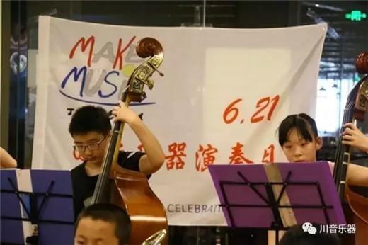 川音乐器携手川音大地音乐学校、尔闻艺术的130位小演奏员们,正在为”6.21国际乐器演奏日“的到来,进行分组排练备战最后的音乐会。小朋友们在老师的带领下,充满活力的非洲鼓表演将“6.21国际乐器演奏日”的活动引向高潮。(川音乐器)