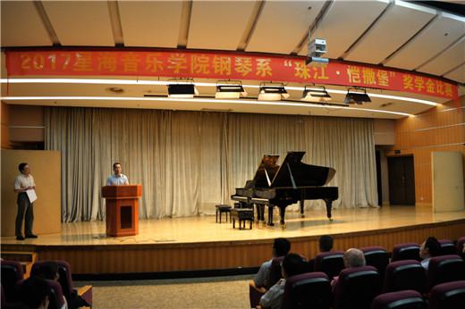 颁奖音乐会上,钢琴系主任黎颂文教授总结了此次恺撒堡奖学金比赛的情况。由中国最优秀的钢琴制造企业珠江钢琴集团积极支持的星海音乐学院“珠江•恺撒堡”奖学金比赛活动,至今已连续举办了多年,是星海音乐学院钢琴系的一项重要赛事活动。奖学金比赛分为大学组和附中组,设置初赛和决赛两轮比赛,选拔出的优秀学生获得由珠江钢琴集团提供的奖学金。今年首次把“珠江﹒恺撒堡”奖学金比赛与“金钟奖”选拔赛合并举办,为了保证比赛的公平公正,星海音乐钢琴系全体在职教师担任本次比赛的评委,实属史无前例。为了保证比赛的公平公正和提高比赛的权威性,我们把专家评委人数从 3 人增加到了 5人,这些评委都是国内外具有影响力的钢琴家、教育家,保障了比赛的权威性。比赛活动得到参赛选手、指导老师和音乐学院师生的广泛关注和积极参与。