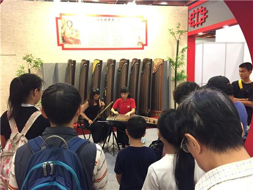 展会于7月7日正式开始,上海民族乐器一厂的展位经过精心布置,格外吸引人们的眼球。这次展位的风格以老上海为主题,红砖、灰墙、三十年代老上海画片,这些元素配合着古筝、琵琶、二胡等中国传统乐器的展示,显得极富韵味。展会开幕的第一天上午,上海民族乐器一厂的销售副总经理杨育清受邀出席了乐器大展的开幕活动,并作为嘉宾上台参加了剪彩仪式。展会期间,前来参观、咨询、试奏的观众络绎不绝,台湾著名古筝演奏家、作曲家、教育家樊慰慈教授也莅临参观了展位。上海民族乐器一厂邀请了台湾当地的古筝青年演奏家段筱嫚在现场进行古筝表演,《青花瓷》、《外婆的澎湖湾》、《小城故事》、《凤阳花鼓》等一首首耳熟能详的乐曲从段筱嫚的指尖流淌出来,赢得现场观众的阵阵掌声。