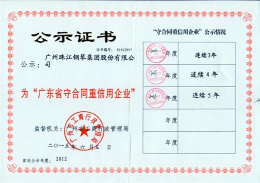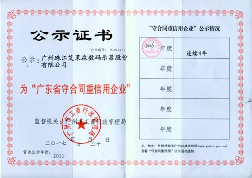 近日,珠江钢琴集团和旗下艾茉森子公司顺利通过市工商局的评审,荣获2016年“广东省守合同重信用企业”称号。至此,集团公司已经连续5年评为"广东省守合同重信用"企业,艾茉森公司已经连续4年评为"广东省守合同重信用"企业。