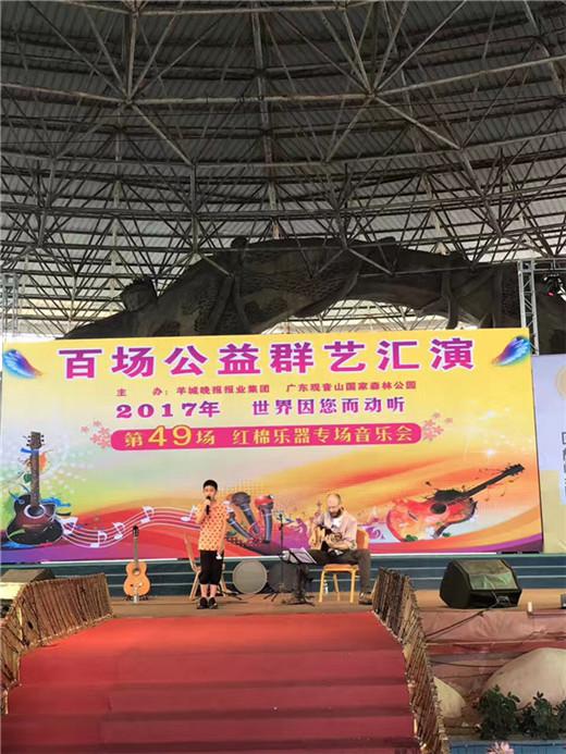 8月6日,世界因您而动听—红棉乐器专场音乐会在广东观音山国家森林公园隆重举行。本次百场公益群艺汇演活动由羊城晚报报业集团和广东观音山国家森林公园联合主办,而红棉乐器作为第49场专场演出,特邀请美国格莱美音乐奖获得者TJ.Troy、意大利吉他比赛Lulgi Mozzani一等奖获得者Mak Grgic、2017萨格勒布音乐节青年组冠军Vanesa llicic国际大咖联同红棉乐团前往参与公益演出,为现场观众送上一场跨越国籍、跨越语言的世界音乐盛宴,乐韵声响彻观音山森林公园。