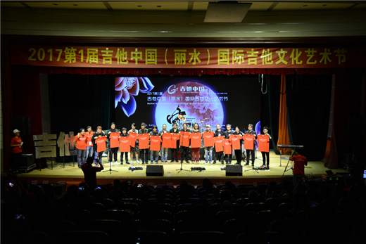 2017第一届吉他中国(丽水)国际吉他文化艺术节由吉他中国、丽水市文化广电新闻出版局、丽水市文学艺术界联合会、丽水华侨学院联合荣誉主办,丽水市文化馆、魔菇音乐.浙江豚草分会、丽水市吉他专业委员会、丽水丽声琴行、北京音乐盛世文化传播有限公司、北京琴国乐器有限公司、豚草吉他专卖联合承办,艺术节也得到了中国乐器协会、中国(上海)国际乐器展览会与亚洲指弹吉他协会和淘宝的支持,支持乐器特色吉他文化产业的活动创建,助力丽水打造区域品牌文化名片。