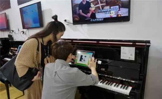 参展人员体验珠江钢琴IN系列的智能互动功能