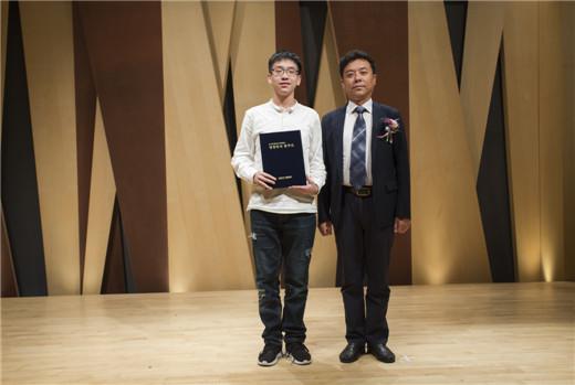 冯健教授为年仅8岁的王艺轩颁发小学组铜奖