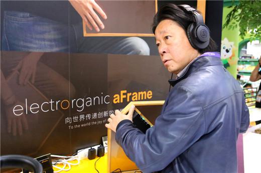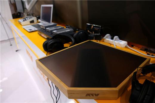 ATV aFrame打击合成器空手即能自由演绎,是将传统乐器、DSP 技术以及日本传统制作工艺相结合而开发的新一代电子打击乐器。可以使用最自然的技巧呈现出从经典原声到现代电子等80多种不同音色。乐手可以手持aFrame当作手鼓演奏,也可以放在支架上演奏,甚至可以用肩带固定在身上演奏。搭配 USB 电池组和吉他无线系统,也可无线演奏。莅临RDEC展位的音乐鬼才卞留念老师也频频摆弄起aFrame,爱不释手。