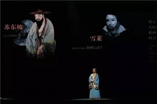 在贝多芬的钢琴曲《月光》的伴奏下,著名朗诵艺术家徐涛、陈铎、胡乐民、唐济强、关熙潮,为我们带来由全球诗人原作组成的交响诗《月夜的徘徊》。同时,一位来自俄罗斯的绸吊演员在月夜美景中从高空飘然而至。为大家打开了一张月夜意象的世界艺术地图,也让我们体味到苏东坡作品跨越时间与国界的独特魅力。