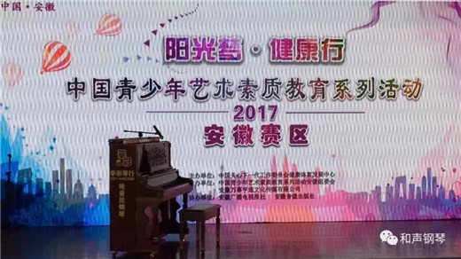 2017“阳光梦•健康行 中国青少年艺术素质教育系列活动”安徽赛区总决赛在安徽合肥顺利举行,和声钢琴“哈曼尼”H-133T6-R受邀作为本次总决赛的指定用琴,并受到参赛选手以及观众的一致好评与热烈追捧。