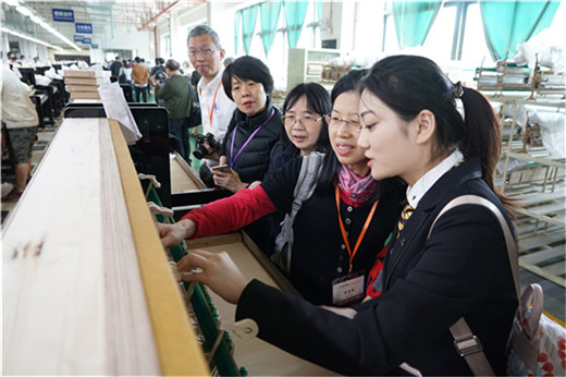 沿着参观路线,参访团成员们对钢琴的生产流程表现出了强烈的好奇心和浓厚的兴趣,在经过共鸣盘装配、总装、木胚、弦槌制造等车间时,纷纷驻足观看工人的手工操作与机器的运转过程,接待人员对大家提出的问题耐心地作出解答。