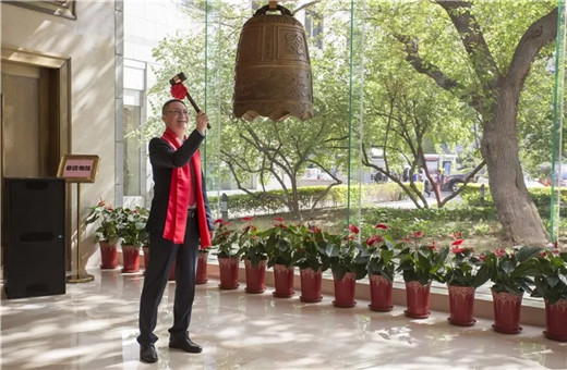 李建宁董事长代表艾茉森公司进行敲钟仪式。艾茉森挂牌敲钟仪式在欢乐的气氛中顺利结束。