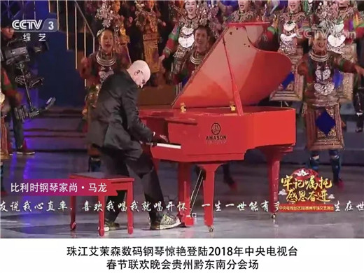 艾茉森数码钢琴还多次被选定为国家大型活动指定用琴:包括2018年中国春晚CCTV-1、CCTV-3贵州分会场、CCTV-15渴望现场等频道、2018人民大会堂新春国风公益音乐会、2017广州世界财富论坛欢迎酒会、2017广东省流行音乐40周年纪念活动等,是各大音乐学院钢琴系教授及钢琴家喜爱的教学和演奏用琴。