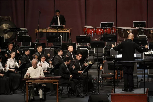本次音乐会特邀中央民族乐团担纲主要演出团体,特邀著名琵琶演奏家刘德海、著名古琴演奏家龚一、著名古筝演奏家王中山同台演出,此外,上海民族乐器一厂旗下的“敦煌?上海馨忆民族室内乐团”也加盟了演出。龚一老师在表演之前强调了乐器的重要性,他认为上海民族乐器一厂对推动民族音乐的发展起到了不可小觑的作用,希望“敦煌”与演奏家能够继续紧紧捆绑在一起,为中国音乐文化的发展而努力,迎来下一个辉煌的六十年!王中山则追忆了1986年与“敦煌”古筝结缘的故事,并对上海民族乐器一厂能在现代化大都市的上海保留传承中国传统文化的一块绿地表示敬佩与祝贺。而刘德海先生更是别出心裁,即兴弹唱一曲《浏阳河》,为上海民族乐器一厂送上了生日祝福,并送上八个大字——“敦煌飞天,艺匠精神”。上海民族乐器一厂六十年来所取得的成绩,均离不开这些演奏家的帮助与支持,从担任技术顾问到乐器评审专家,从器乐大赛评委到民乐讲座嘉宾,他们与“敦煌”一起为推动中国民族乐器和民族器乐文化事业的发展贡献着力量。