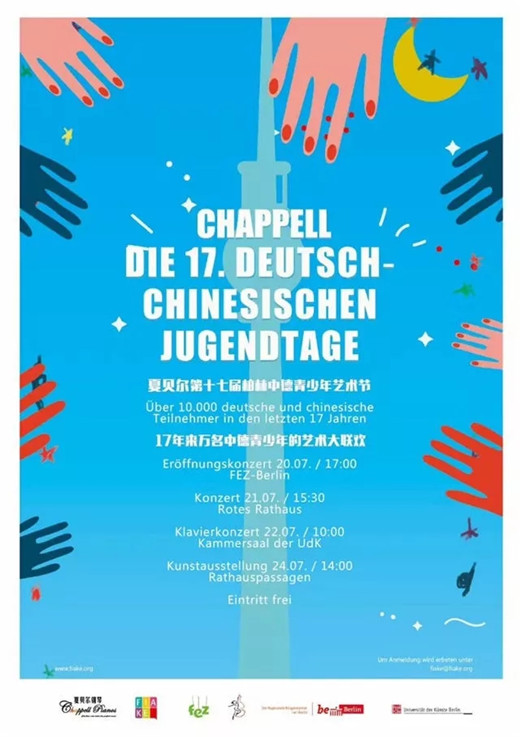 夏贝尔第十七届中德青少年艺术节7月20日在德国柏林的乌姆海德宫拉开序幕。来自中国和德国的30多个艺术团体,800多位小艺术家参加了盛大的艺术节开幕式。德国柏林市政府家庭与青年部部长Sigrid klebba 女士、德国艺术与教育国际交流促进会主席黄梅博士、斯坦伯格钢琴集团董事、常务副总经理张悦青先生在开幕式上分别致辞。中德两国的小艺术家们为开幕式献上了精彩纷呈的文艺表演。
