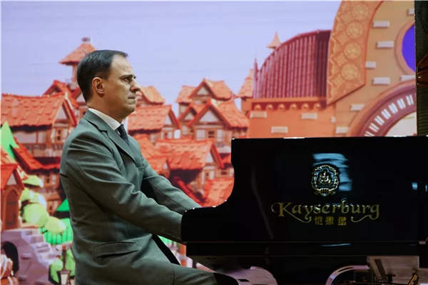 《图画展览会》视听音乐会首演式演奏嘉宾、恺撒堡艺术家乔万尼先生现场演奏了《图画展览会》的第一首曲目《漫步》