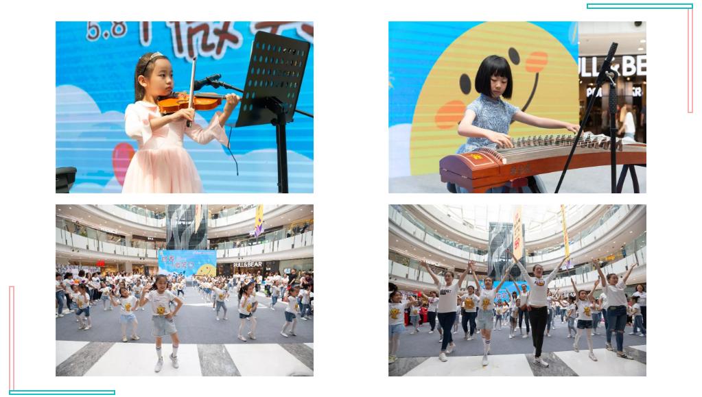 活动中孩子们纷纷献上了自己的拿手才艺,激昂的电鼓敲出了全场沸腾的火花,悠扬的小提琴让美妙的乐声绕梁不绝,清脆灵动的声乐演唱充满童真乐趣,抒情的萨克斯风也徐徐演绎出了不凡的天籁之音,更有古筝二胡等民乐演奏相映成趣…除了一曲曲温暖动人的旋律,活动结束还设置了“歌声与微笑”亲子互动舞蹈快闪,将音乐会的气氛推向高潮!