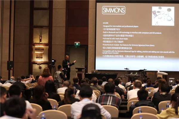在新品发布会上,中国吟飞、美国Simmons、日本EFNOTE、美国Nektar、德国Bitwig、和ESI、新加坡CME,七大中外品牌齐聚一堂,来自品牌方的吟飞艺术中心主管华那晨(中国)、Guitar Center品类部门经理Jared Pascale和上海罗迪克罗兰科技有限公司副总经理李永晶、EFNOTE联合创始人Kazuaki INOUE、Nektar 总裁Niels Larson、Bitwig的Placidus Schelbert 、ESI创始人及总裁 Claus Riethmueller、CME创始人兼CEO赵易天向现场观众详细介绍了最新产品。