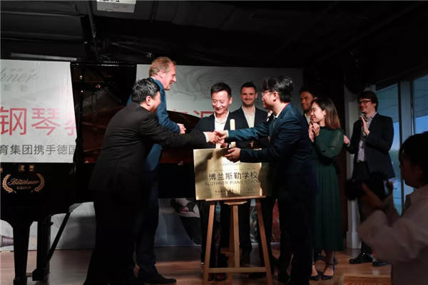 音皇音乐教育集团校长,著名青年钢琴家李成伟先生; 音皇音乐教育集团联合创始人,著名双簧管演奏家,黄铮博士; 音皇音乐教育集团联合创始人余戌东先生;德国博兰斯勒集团总裁克里斯蒂安·博兰斯勒博士;德国博兰斯勒中国区总裁方阳出席了授牌仪式并在嘉宾们的祝福中,共同为“博兰斯勒钢琴学校”揭牌!