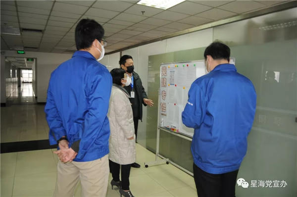 检查过程中,金大钧向王劲雨汇报了星海防疫工作推进情况。金大钧说,在疫情防控过程中,星海严格执行北京市委市政府、北京市国资委、一轻控股公司有关疫情防控的文件、通知精神,党政齐抓共管严格落实《星海公司新型冠状病毒感染的肺炎疫情期间“防控指南”》和《疫情防控应急预案》中的各项措施,特别关注返京员工的身体状况。2月10日企业有序开工后,更加重视各项防控措施的落实,同时积极宣传各单位防控工作中的先进事迹和人物,力争在思想、物质上为企业全面复工做好准备。