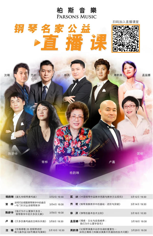 “音”爱相伴,钢琴名家直播授课“疫”路前行,柏斯音乐公益行动柏斯音乐·钢琴名家公益直播课3月隆重开课