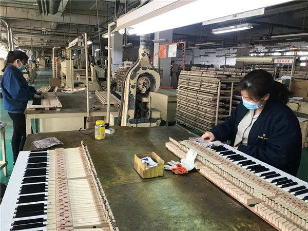 随着国家防疫工作步入稳定期,公司配合政府政策开展生产,员工们在做好防护的同时并保证钢琴的高品质制造。