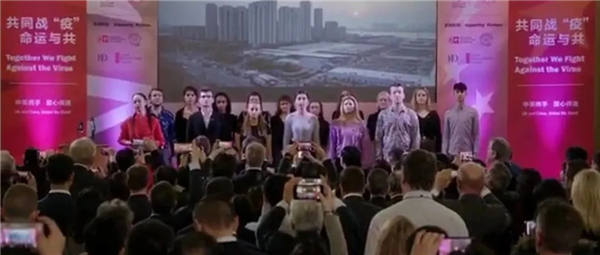 15名青年学生和英国音乐人菲比·海恩斯共同演绎公益歌曲《黎明的编钟声》,每一句歌词都唱出了中英各界人士希望团结合作、共同战胜疫情的迫切心愿。(英国布罗德伍德钢琴)