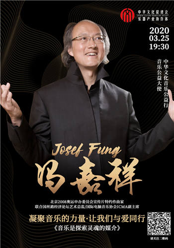 在全国上下聚力抗击新冠肺炎疫情之际,为丰富人们精神文化生活,激励人民群众共同坚守,坚定抗疫信心,让百姓“宅家”也能滋养精神家园。“凝聚音乐的力量!”,让我们与爱同行,在中华文化促进会指导下,由中华文化促进会乐器产业协作体发起,联合著名音乐家、教育家等共同推出“中华文化音乐公益行”线上音乐大师公开课活动于3月23日19:30正式上线直播。