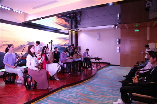 随后,调研员张宇一行参观了陈列馆馆藏的精美乐器,并欣赏了由上海馨忆民族室内乐团带来的精彩演出,在民乐合奏《将军令》、《花好月圆》 优美的旋律下,感受民族音乐文化深厚的底蕴。