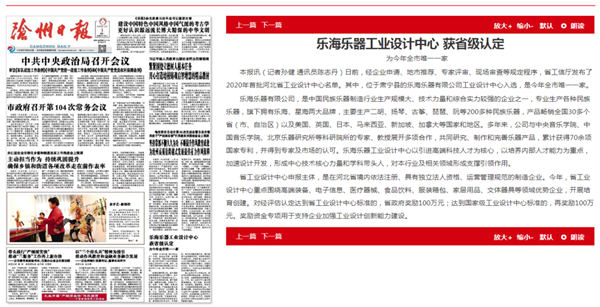 乐海乐器工业设计中心获河北省省级认定!-中国乐器协会