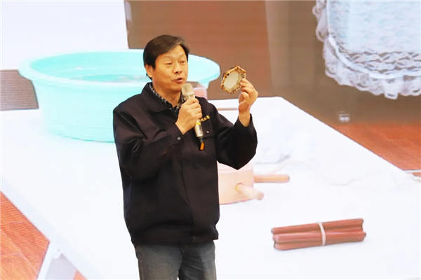 随后,二胡琴筒蒙皮制作展示和“动手PK”中,来自上海民族乐器一厂二胡质量总监、非遗传承人龚耀宗和新生代二胡制作师沈敏杰师傅共同为孩子们展示了二胡制作关键步骤---蒙皮环节,以及“蒙皮”所用到的材料、工具和“制作小窍门”。