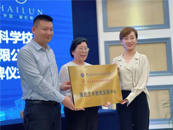 授牌仪式:宁波幼儿师范高等专科学校副校长董刚和海伦艺术教育投资有限公司副总经理顾箐共同授牌给贤江艺术与体育学院常务副院长黄雅芸.