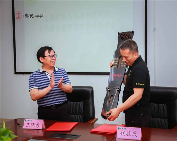 代胜民在致辞中讲到,河南中州民族乐器有限公司成立于1988年,工厂坐落于焦裕禄精神发祥地-兰考县,自公司成立以来,始终秉承匠艺初心致力于传统民乐艺术的传承、推广与发展。“择一事、终一生、成一志”,用一生只为一把琴的态度敬畏老一代人的辛勤付出,用虔诚的姿态塑造匠心好物。代胜民表示,今日能与河南农业大学这种百年高校合作,不仅是两家单位校企共建人才之间的交流,更是传统文化与民族乐器之间的碰撞,我相信在两个团队的共同努力下,一定能为传统民乐在新的发展上提供新鲜而有力的方向。