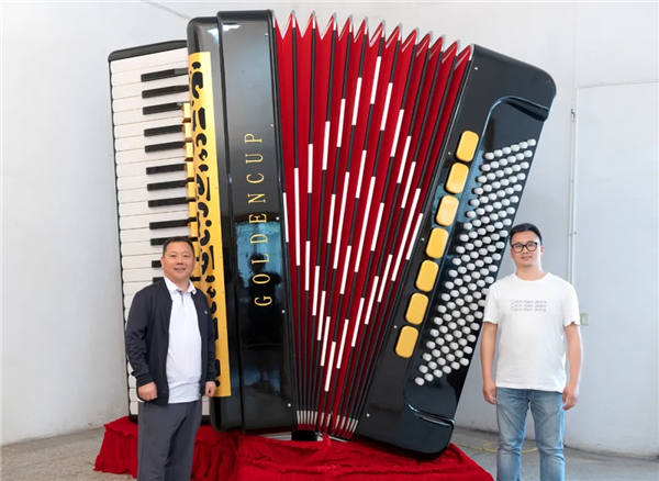 江阴金杯安琪乐器有限公司一直以来致力于手风琴产品的创新与技术的研发。为了支持我国手风琴事业的发展,金杯乐器精心策划研制九个月,为新疆伊宁政府研发了这台巨型手风琴——金杯之星。