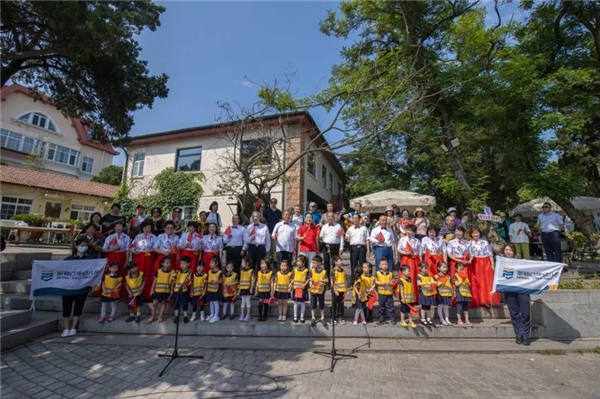 下半场选址在风景优美,景色秀丽的郭沫若书房。以音乐快闪的形式呈现,包含吉他合奏、非洲鼓、合唱等多元化的艺术表现形式。其中尤为值得一提的是,在这群参与活动的群体中,还有20多名同沐阳光的心智障碍青年,他们也被称之为“星星的孩子”,共同参与其中。“音乐人生,快乐相伴”,当音乐的旋律响起,仿佛每个孩子都找到了属于自己的灵感,置身其中,享受音乐的魅力,沉浸在音乐的欢乐中。这恰好与活动的理念,不谋而合。最后,以一曲《我的我的祖国》唱出每个中华儿女的热切心声和对祖国母亲由衷地热爱,挥动的红旗迎风飘扬,爱国的情怀永不改变。
