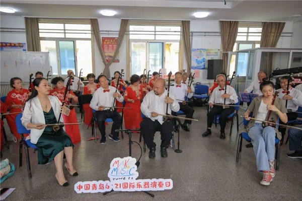 2021青岛“一带一路”施坦威国际艺术节6• 21国际乐器演奏日活动分为上下半场,上半场以传统民乐为主,举办庆祝建党100周年“音乐红”百名志愿者,百年胡琴奏响百年华音,2021“活力西镇”青岛市市南区中老年二胡展演活动,运用百年胡琴演奏艺术形式,奏响贺赞中国共产党百年华诞、奋进新时代的昂扬旋律,歌颂伟大祖国繁荣昌盛,赞美美好新生活,表达青岛人民对党的无限热爱和对祖国母亲的深深祝福。通过活动及展览、快闪等活动,营造浓厚的传统音乐文化氛围,激发人民奋力把青岛打造成文化底蕴深厚并且开放、和谐、现代的多元文化汇集之城,以优异成绩共庆中国共产党建党100周年!