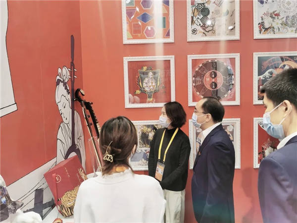 多位领导及各地展商、交易团成员来到上海品源文化的“全球博物馆IP授权与运营”展区进行参观,该展区内的敦煌新品不时地引来“围观”。