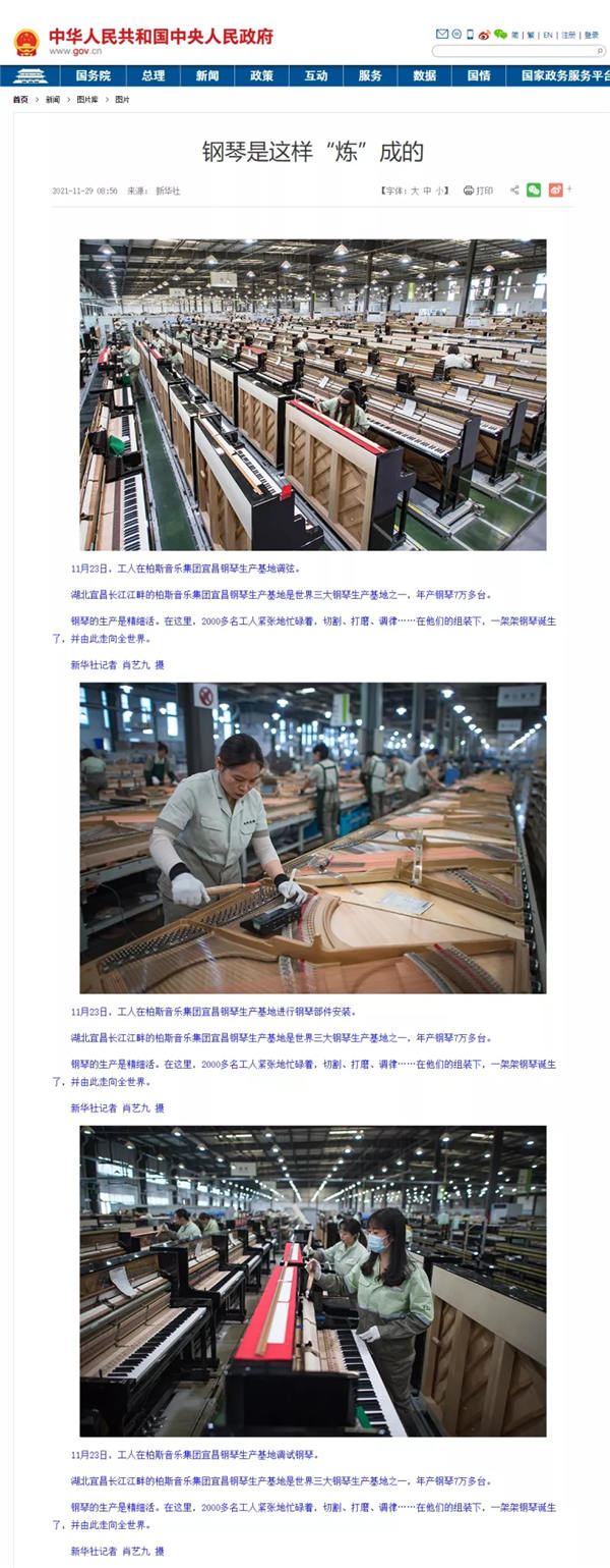 新华社、中国政府网、人民网——全网聚焦“柏斯音乐集团钢琴生产基地”