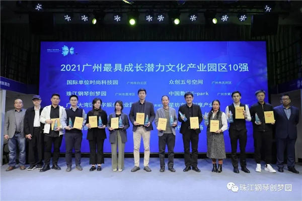为充分发挥广州市文化产业园区的示范带动作用,挖掘文化产业园区的价值,主办方开展了2021年广州文化产业园区系列评选活动,并在会上揭晓了“2021广州最具成长潜力文化产业园区10强”榜单,珠江钢琴创梦园荣幸入选。广州珠江钢琴文化园区运营管理有限公司执行董事、总经理曾志恒代表珠江钢琴创梦园上台接受表彰。
