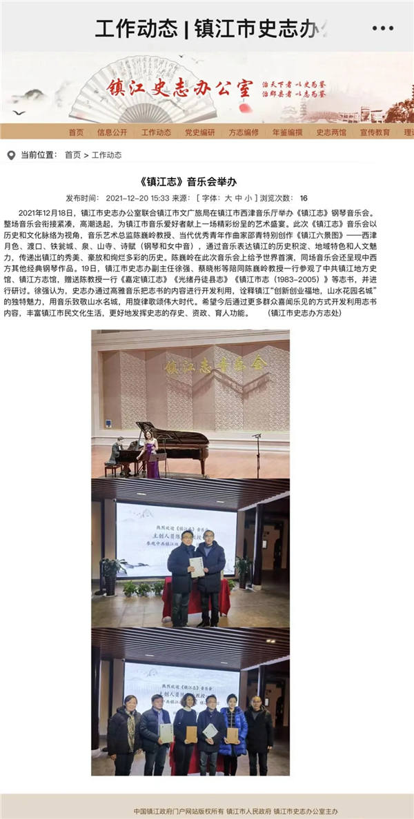各大传媒对“镇江志”音乐会在西津音乐厅首演进行报道,用音乐致敬山水名城,用歌声歌颂伟大时代。