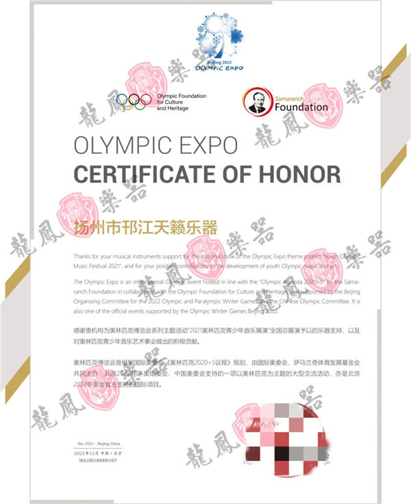 经奥林匹克青少年音乐展演全国委员会的实际考察,多方筛选后,龙凤古筝荣幸成为奥林匹克博览会主题活动——奥林匹克青少年音乐展演全国总展演专用古筝,龙凤古筝将充分满足活动需求,为全国总展演提供优质服务,为展演助力,为冬奥加油!