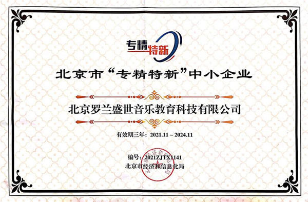 罗兰数字音乐教育凭借在数字音乐教育领域的技术创新实力和知识产权战略保护意识,被认定为“北京市知识产权试点单位”,并获得北京市知识产权局颁发的《知识产权试点单位证书》。同时,罗兰数字音乐教育凭借在数字音乐教育领域的持续创新能力和高市场认可度,成功入选北京市“专精特新”企业。这些荣誉,是权威部门对罗兰数字音乐教育专业化、精细化、特色化、创新化的认可,也是对罗兰教育长期在乐器、音乐教育领域不断探索和创新能力的又一次肯定。