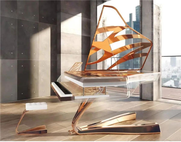 德国博兰斯勒2021最新款的水晶设计。这个半透明的“皇冠”是一种高贵又颇具胆识的超强设计三角钢琴。独特的琴腿设计,使重量更均匀地分布在整个钢琴身上。“皇冠”可以适配任何环境,包括在海浪中航行的顶级游艇。它特殊的琴腿设计可以最大程度保证它的平衡性。这架钢琴的外框为木质制作,可以定制成任何颜色,也可以定制为你最喜欢的特殊饰面。一条环绕整架钢琴的金属丝带设计元素,让空间极具张力与活力,精致高雅的质感极其富有标志性。这条丝带可以由铬、金或玫瑰金制成。水晶顶盖为这项非凡的工程和设计壮举增添了轻盈和海风的气息。