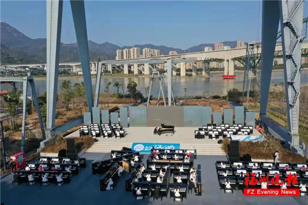 现场,101台“哈曼尼”钢琴以“山水福地”为组合,按照“两江围绕一福”的造型在现场依次摆开,从空中俯瞰,一个巨型的福字“隽刻”在江岸上,象征福文化源远流长,象征福州这座唯一以“福”字为名的省会城市,沿江向海,加快建设现代化国际城市。