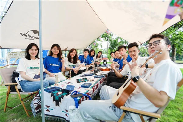 青年们或在草坪上与好友谈天说地;或发挥想象,在小型帐篷中描绘自己的梦想;或在舞台上随兴而歌,展现青春之我;或流连于各个趣味小游戏和创意打卡点,在游戏中增进彼此了解……