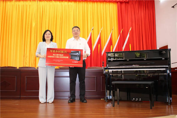 随着生活水平的不断提高,茶阳人民群众的精神文化生活日益丰富多彩,自发组织的广场舞、锣鼓队、花环龙表演、汉乐演奏等获得社会的一致好评。珠江钢琴集团在了解到茶阳镇具有非常深厚的文化底蕴和文化基础,但缺乏钢琴等音乐设备,结合集团和茶阳镇实际,经集团党委集体研究决定,决定向茶阳镇政府捐赠立式钢琴一台;集团下属子公司艾茉森公司向驻茶阳工作队捐赠数码钢琴一台。鼓励茶阳文化活动再接再厉,勇攀高峰,激发驻茶阳镇工作队干事创业的热情。集团党委副书记黄贤兴于2022年6月1日出席捐赠仪式,茶阳镇党委书记吴萍萍代表茶阳镇对珠江钢琴集团表示衷心的感谢,并颁发捐赠证书。