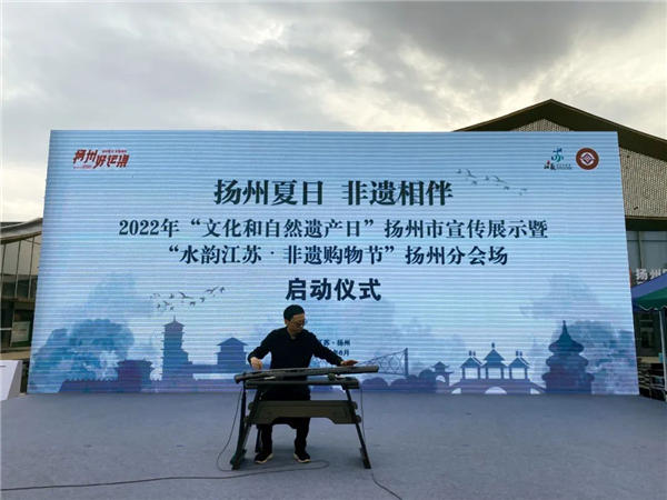 6月10日,“扬州夏日 非遗相伴”2022年“文化和自然遗产日”扬州市宣传展示暨“水韵江苏•非遗购物节”扬州分会场活动在三湾大运河非遗文化园举行。活动由扬州市文化广电和旅游局、扬州运河文化投资集团有限公司、蜀冈-瘦西湖风景名胜区管委会主办。