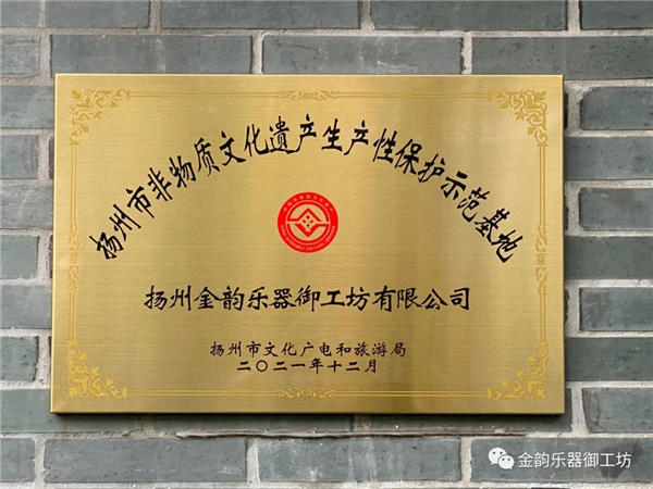 活动现场还为12家扬州市首批非物质文化遗产生产性保护示范基地授牌,激励更多非遗保护单位寻标对标,共同传承保护好传统非遗。其中,金韵乐器入选非遗生产性保护示范基地。(扬州金韵乐器御工坊有限公司)