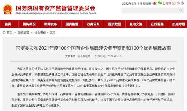 2021年度国有企业品牌建设实践案例和品牌故事征集,是国资委社会责任局为深入贯彻习近平总书记关于品牌建设的重要指示精神,落实党中央、国务院关于加强品牌建设的部署要求,指导推动中央企业讲好品牌故事,不断提高品牌建设工作水平,于2021年11月组织开展的工作。中央企业和地方国资国企积极组织、踊跃参与,共报送了492个品牌建设实践案例、634个品牌故事作品。经评审,最终遴选出具有良好示范效应和学习借鉴意义的100个典型案例和100个优秀品牌故事。